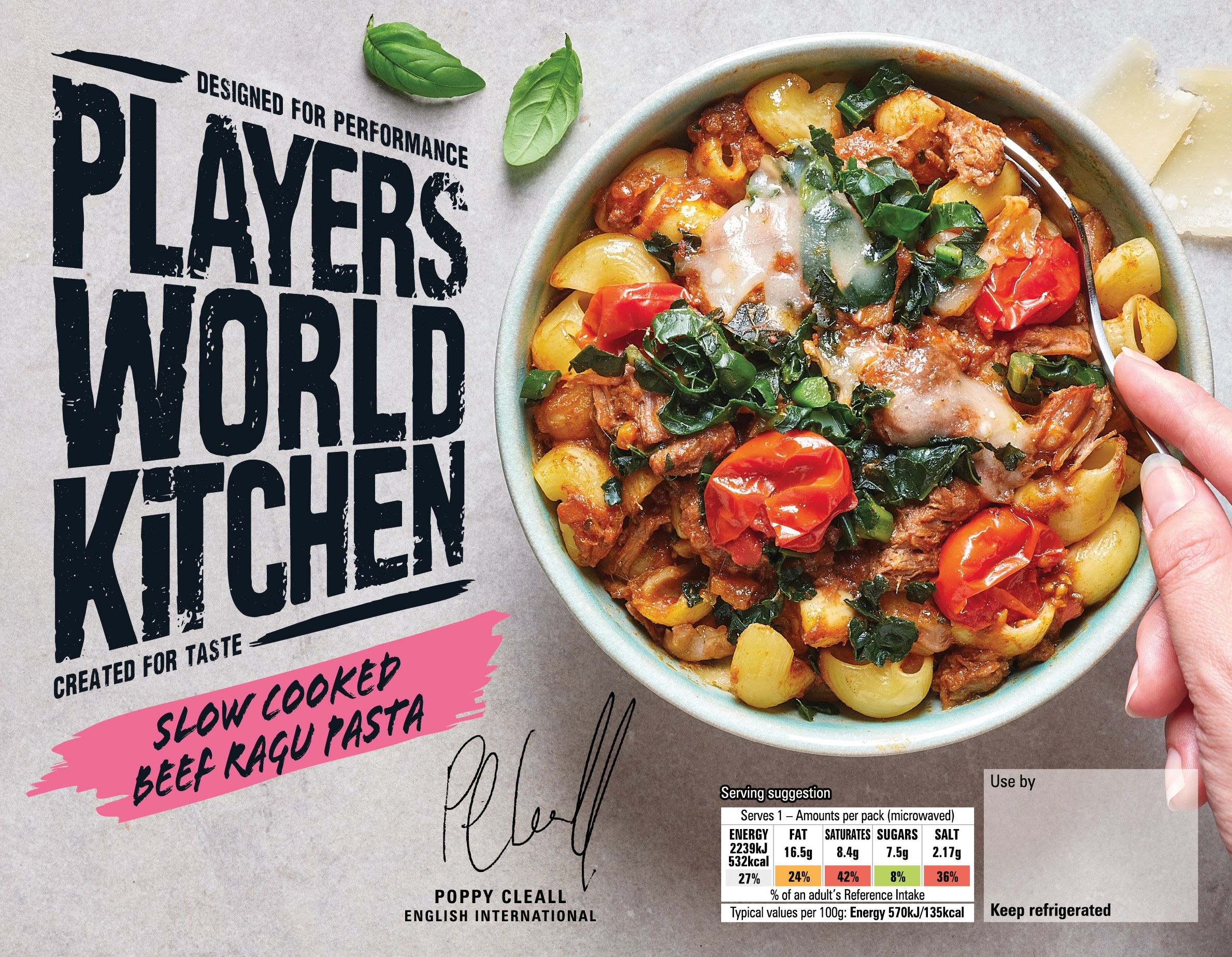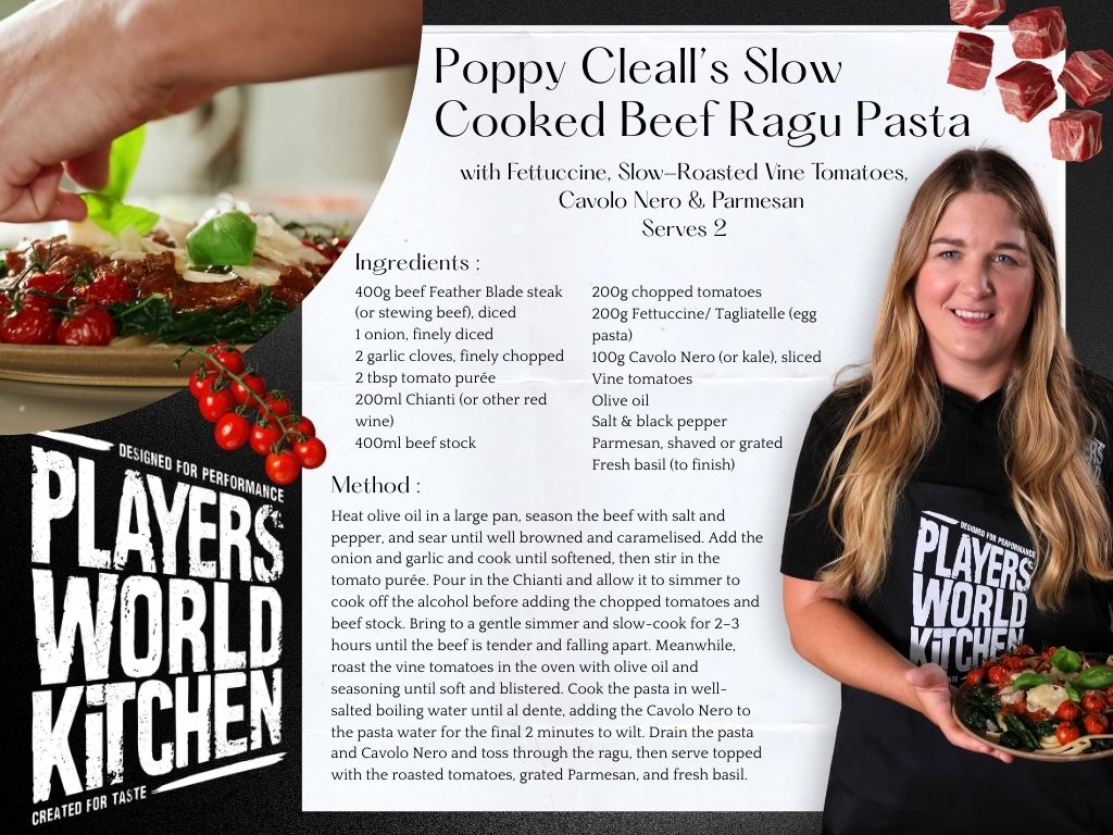 Inspired by Poppy’s love of hearty, no-nonsense food, her comforting dish is designed to fuel performance and bring people together around the table. Available at ASDA as part of the Players World Kitchen range.